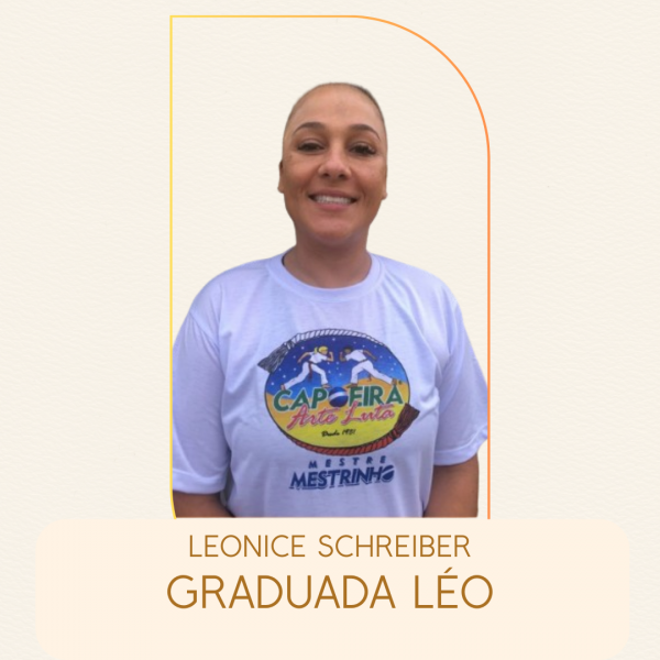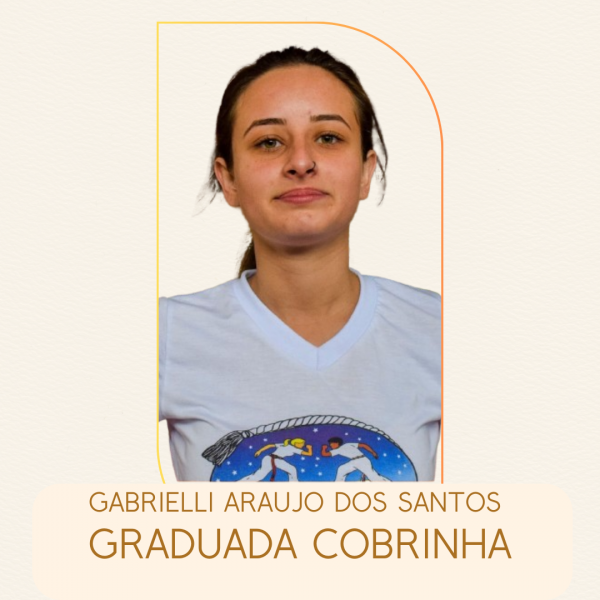 Nascida em Cascavel (PR) em 2000, iniciou a prática de Capoeira em 2006 em Cascavel (PR). Acadêmica de Educação Física. Ministra aulas de Capoeira em escolas privadas e municipais que ofertam educação em tempo integral desde 2016.