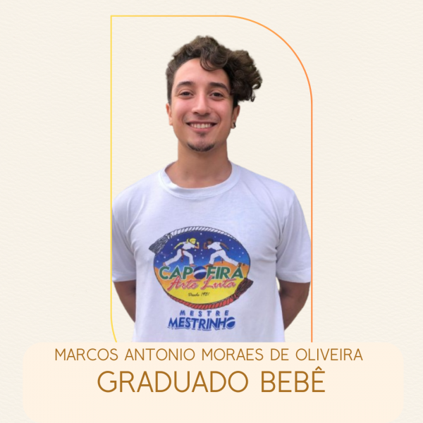 Nascido em 23 de fevereiro de 2001, iniciou a prática da em 2013, sendo hoje um Graduado da nossa escola Capoeira atuando como Instrutor de Capoeira numa das escolas públicas da nossa cidade que oferta Educação em Tempo Integral, cursando Educação Física atendendo a uma das condicionalidades do edital.